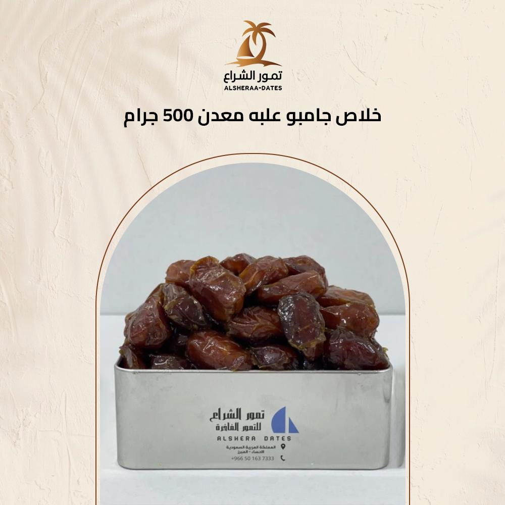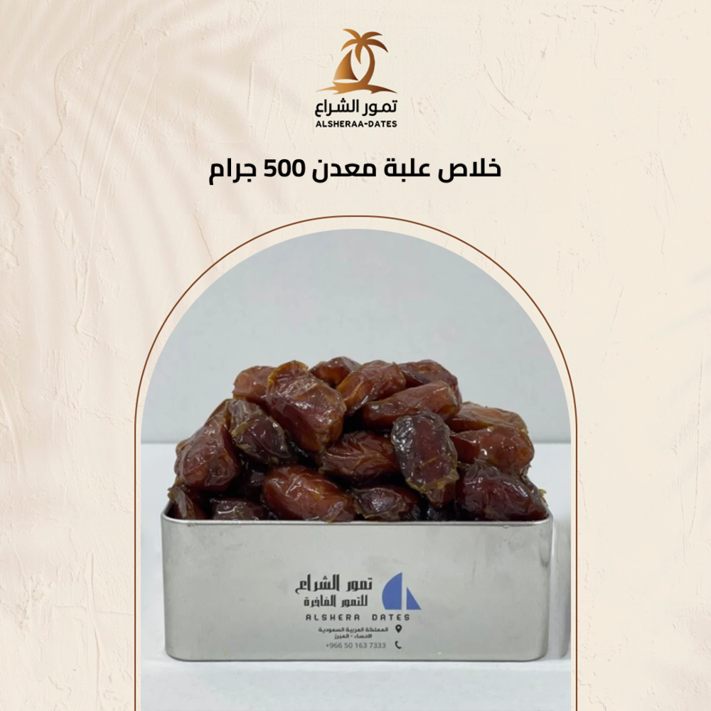 علبة التمر خلاص علبه معدن 500 جرام تُعتبر هذه التمور الخيار المثالي لعشاق الطعم الأصلي والمذاق الفريد وتم اختيارها بعناية لتضمن لك أفضل جودة، حيث تتميز بحلاوة طبيعية وقوام طري يذوب في الفم وسواء كنت تبحث عن وجبة خفيفة صحية، أو مكون رئيسي لإعداد وصفات لذيذة،استمتع بأجود أنواع التمور الفاخرة مع متجر الشراع للتمور! 🌴
